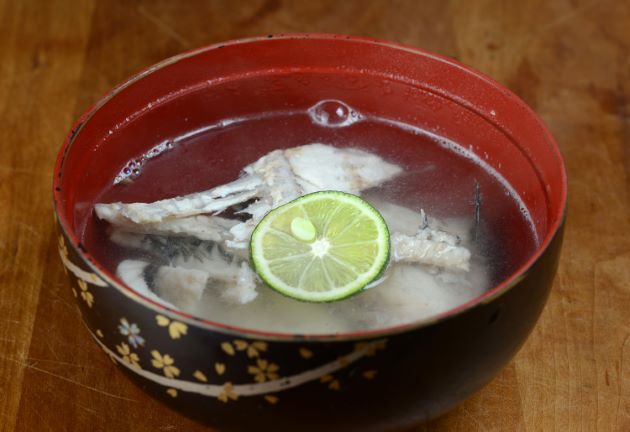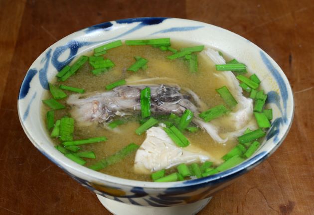 リュウグウノヒメの煮つけ(あら煮) 頭部やあらを集めて煮つけにしてみた。湯通しして冷水に落とし鱗などをこそげ取る。これを酒・醤油・水で煮る。みりんや砂糖で甘くしてもおいしい。煮ても硬くならず、ほどよく繊維質で身離れがいい。身自体にもうまみがあり、非常に美味。クリックで閉じます![]()